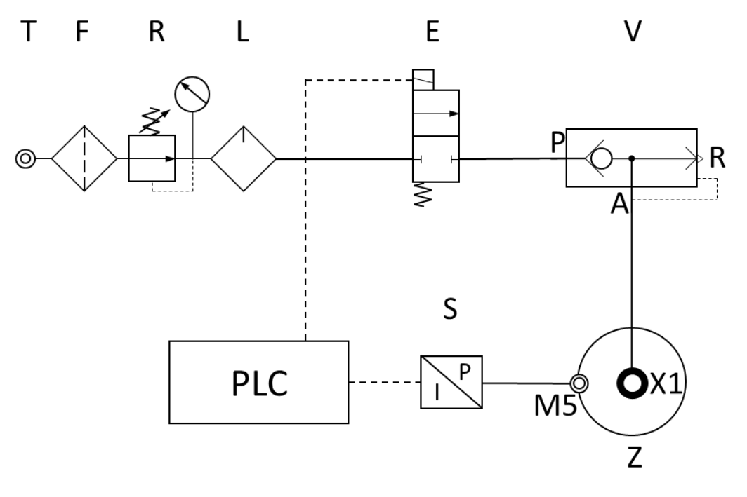使用压力感测器(Pressure sensor)连接气动起子的M5讯号接头。