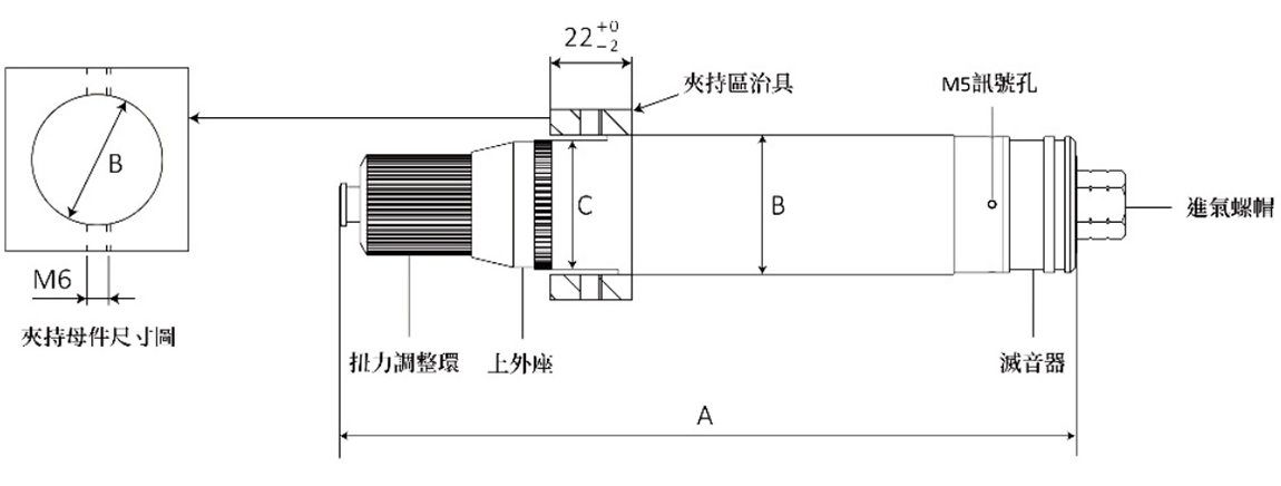 使用压力感测器(Pressure sensor)连接气动起子的M5讯号接头。