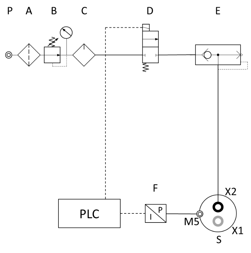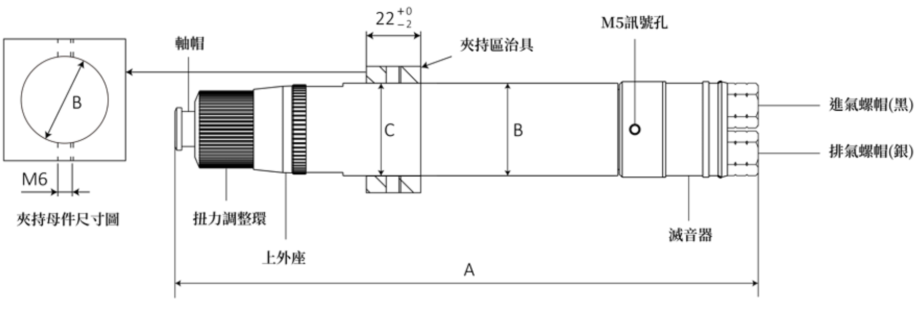使用压力感测器(Pressure sensor)连接气动起子的M5讯号接头。